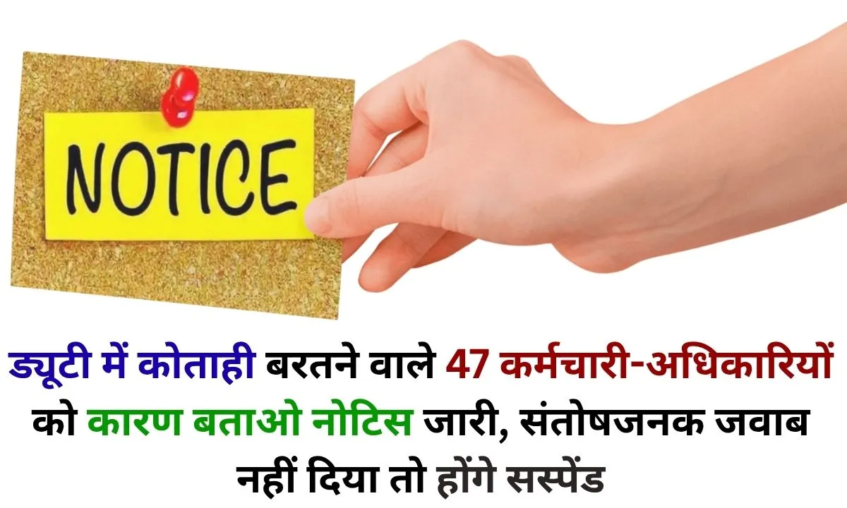 Haryana News : ड्यूटी में लापरवाही करने वाले 47 कर्मचारी-अधिकारियों को कारण बताओ नोटिस जारी, ये है पूरा मामला